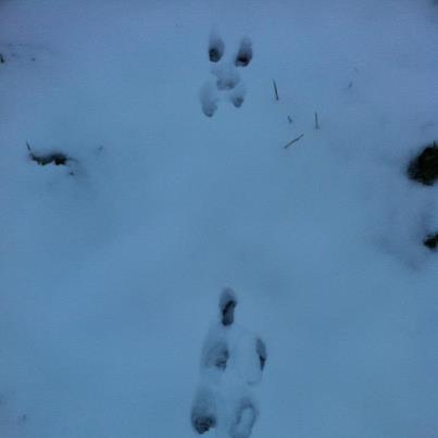 Lots of mysterious footprints including birds, rabbits & badgers going their merry way.